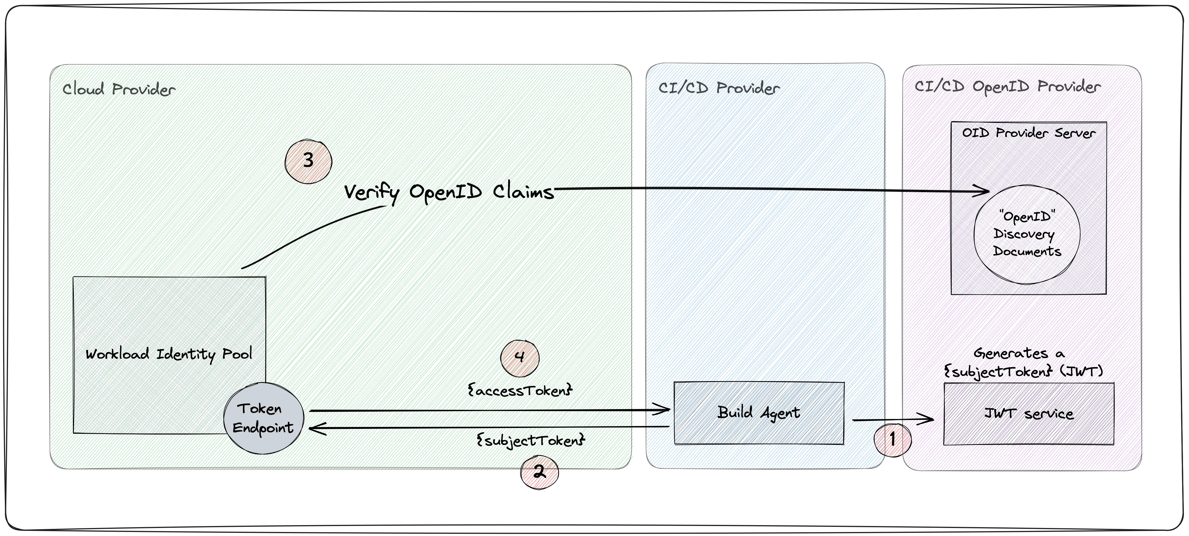 - Your build agent requests a JSON Web Token (an identity) from the OpenID Provider (your CI/CD provider).